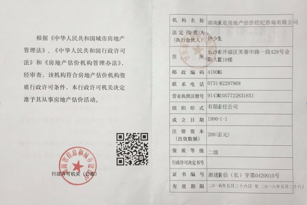房地產(chǎn)評(píng)估公司名稱由“湖南求是房地產(chǎn)估價(jià)經(jīng)紀(jì)咨詢有限公司”變更為“湖南求是土地房地產(chǎn)評(píng)估有限公司”,公司法人由“鐘少先”變更為“康紅英”。